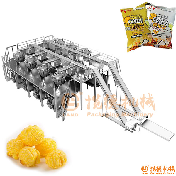 爆米花包裝生產(chǎn)線適用于計量精度高和一些易碎的散狀物料進行包裝,例如:膨化食品、鍋巴、果凍、糖果、開心果、蘋果片、水餃、湯圓、朱古力、小五金件、藥材等。